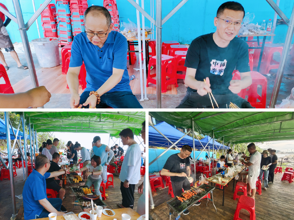 一線海景燒烤,各式各樣的烤串、幾杯啤酒、飲料,還有各種放松的娛樂項(xiàng)目。全員齊動,自給自足,推杯換盞,把酒言歡,其樂融融,好不愜意。